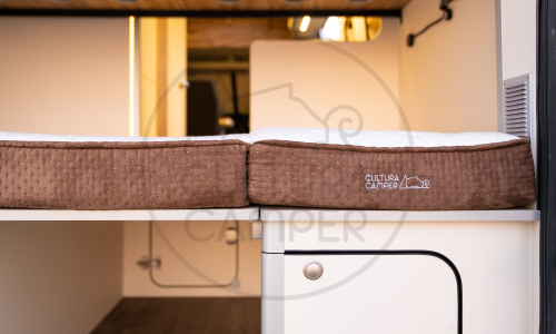 Esta Van es muy espaciosa, perfecta para viajar con animales, pero además, instalamos literas desmontables para que en un futuro la familia pudiera hacerse más grande con la llegada de niños y un espacioso lavabo que les dará un plus de comodidad.